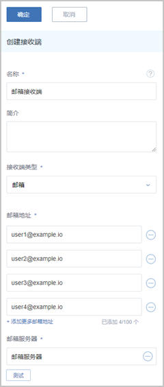 ZStack 3.7.0对报警器进行优化,邮箱类型的接收端支持添加多个(不超过100)邮箱地址,使用该接收端的报警器触发后,所有邮箱地址都能接收到报警消息,方便多用户及时掌握云平台健康状况。