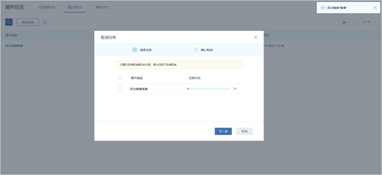 ZStack 3.7.0支持一键取消长时任务,在操作日志“进行中”页面,用户可按需随时一键取消进行中的长时任务,便捷运维。