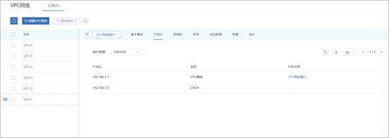ZStack 3.7.0支持在UI界面查看三层网络(私有网络、公有网络、VPC网络)的IP使用情况,在三层网络IP统计详情页,用户可快速查看已用IP及其关联资源,以及未被占用IP情况,从而提高IP规划效率。