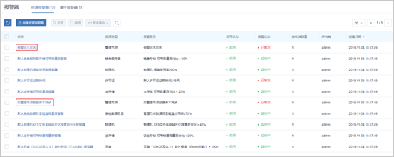 同时,双管理节点高可用新增两个资源报警器:仲裁IP不可达、双管理节点数据库不同步。