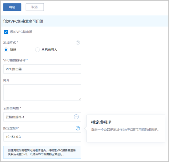 在ZStack 3.7.0中,创建VPC路由器支持指定公网IP地址,方便用户按需规划网络环境,例如方便提前规划静态路由。创建单个VPC路由器支持指定默认公网IP,创建VPC路由器高可用组支持指定该高可用组的虚拟IP。