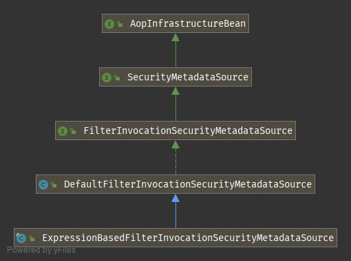 元数据加载器 FilterInvocationSecurityMetadataSource是 FilterSecurityInterceptor 的属性,UML 图如下:
