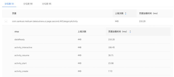 我们最关心的两个页面性能指标就是页面加载时间和页面渲染速度。测试页面加载速度可以直接使用美团内部的Metrics性能测试工具,我们将页面Activity对象创建作为页面加载的开始时间,页面API数据返回作为页面加载结束时间。