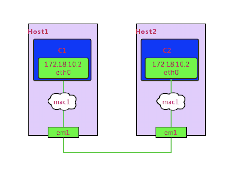 MAC-VLAN 具有 Linux Kernal 的特性,用于给一个物理网络接口(parent)配置虚拟化接口。虚拟化接口与 parent 网络接口拥有不同的 mac 地址,但 parent 接口上收到发给其对应的虚拟化接口的 mac 包时,会分发给对应的虚拟化接口,有点像将虚拟化接口和 parent 接口进行了「桥接」,使虚拟化网络接口在配置了 IP 和路由后就能互相访问。