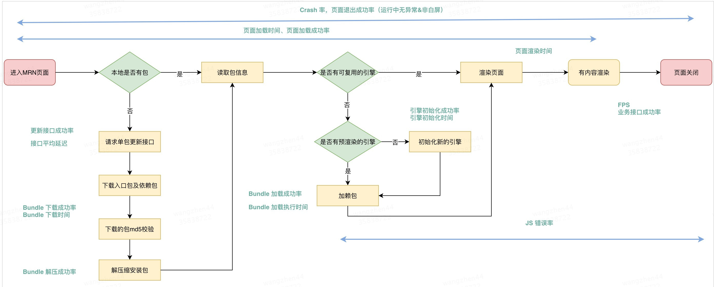可用性指标也是我们关注的关键指标,它直接决定了我们的MRN页面是否能够正确、稳定地为用户提供服务。通过MRN Bundle加载全景,我们可以确定整个包加载的几个关键节点。可以说,MRN业务的可用性就是取决于这些关键节点的成功率。