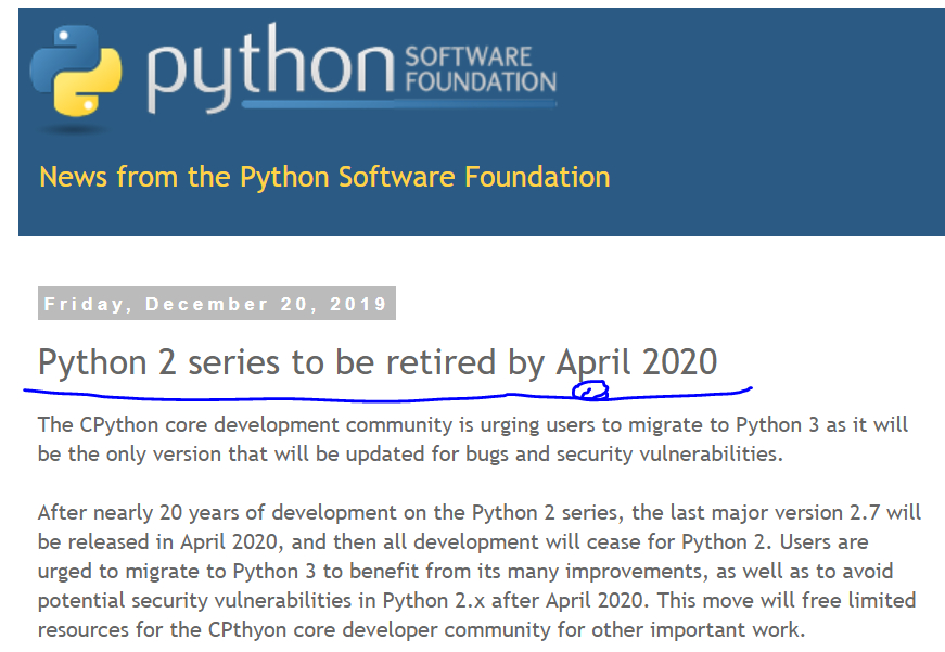 然而,我今天偶然看到一位大佬的疑问,大意如下:官网发布的 Python2 退休日期说是 4 月,那个倒计时网站是不是冒充的官方消息?