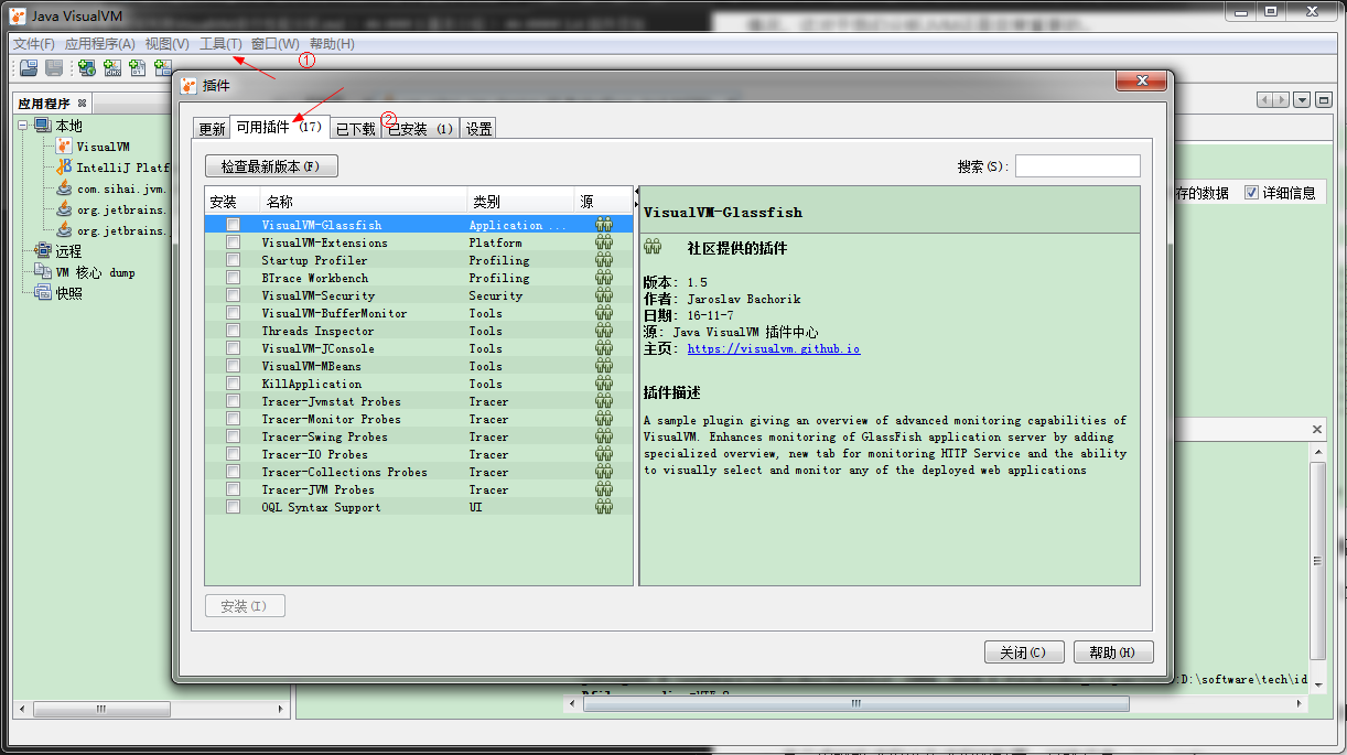 注意, 以上这些都不是关键,关键是VisualVM中还有一个很重要的功能,可以添加插件获取更多的功能。