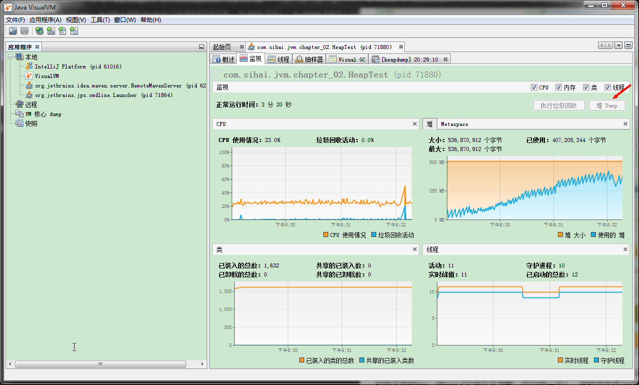 这样运行程序之后,就可以自动打开VisualVM程序了。