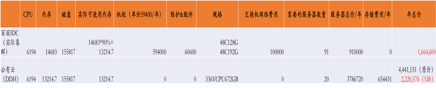针对客户的虚拟化系统,阿里云推荐了DDH的云上虚拟化方案,并且针对客户的实际配置,对比了线下IDC和DDH的TCO。