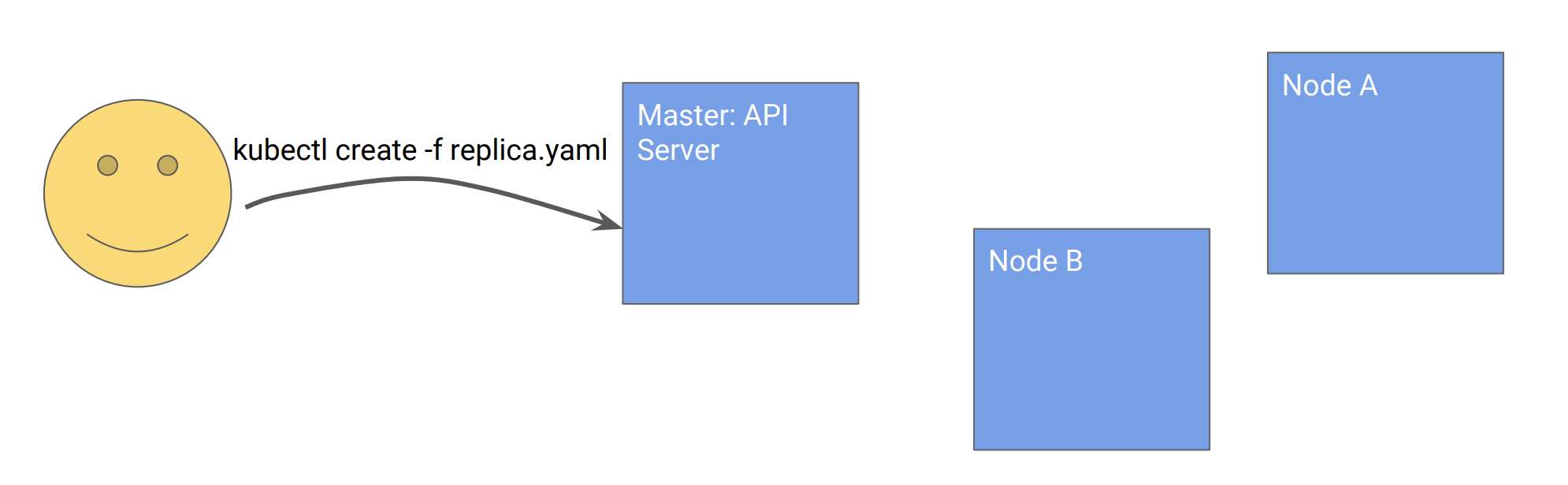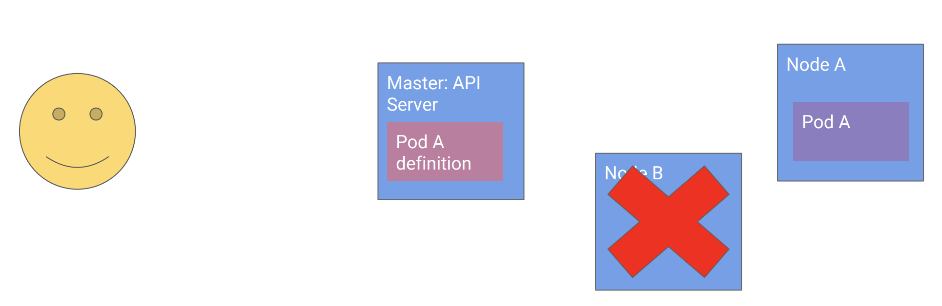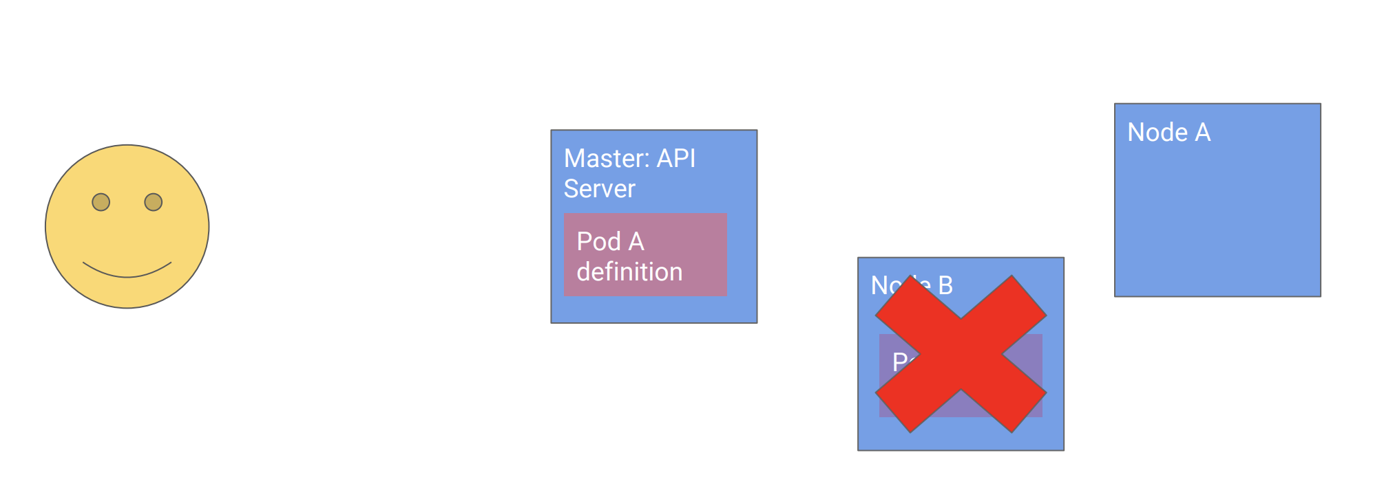 这里需要注意主节点只是存储了Pod的定义声明,而不会向节点B发送命令,如果那样做,主节点就会变得和我们之前提到的客户端一样,复杂而脆弱,且难以扩展。这就引入了K8s的第二个设计原则: