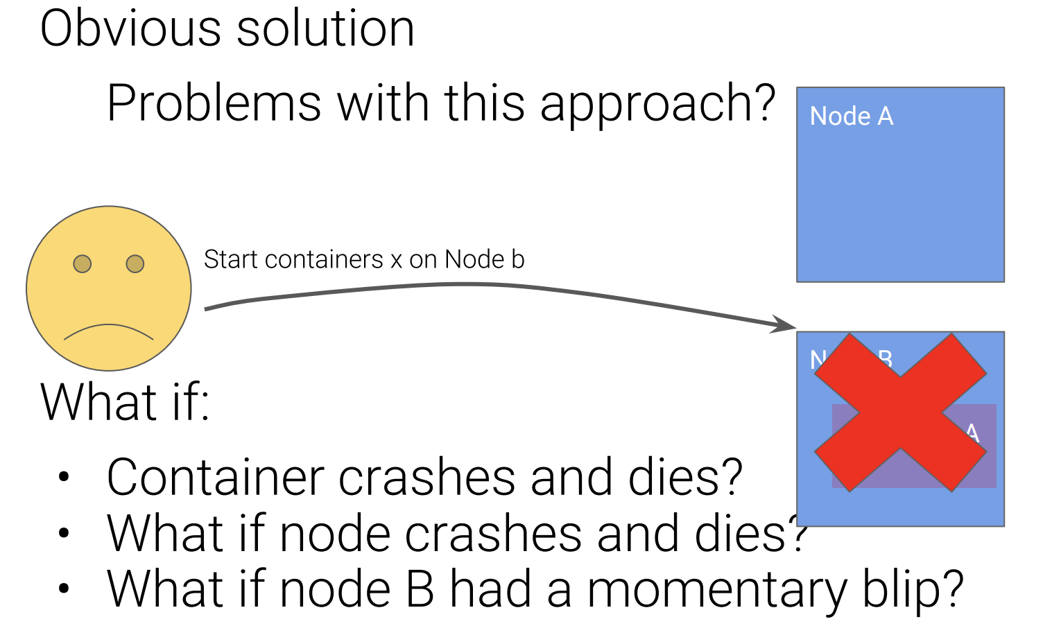 但是这样做的话,如果容器,节点崩溃,或者节点临时不可访问的时候,用户就必须监控和存储每一个节点和容器的状态,捕获所有的异常,并做异常处理。也就是说把所有的复杂的异常处理的逻辑交给客户端来做。