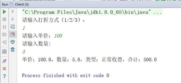 System.out.println("单价:" + price + ",数量:" + num + ",类型:" + type + ",合计:" + totalPrices);