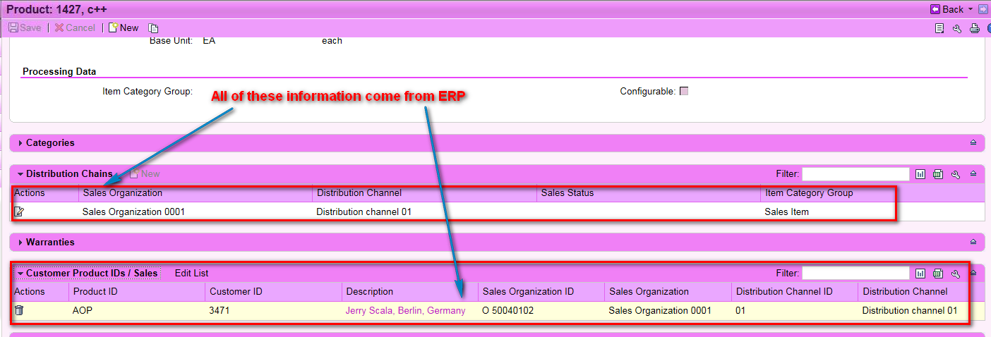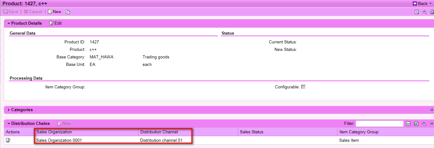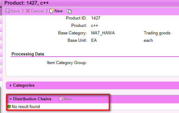 However, since this product itself is downloaded from ERP, you could NOT add any distribution chain to it manually.