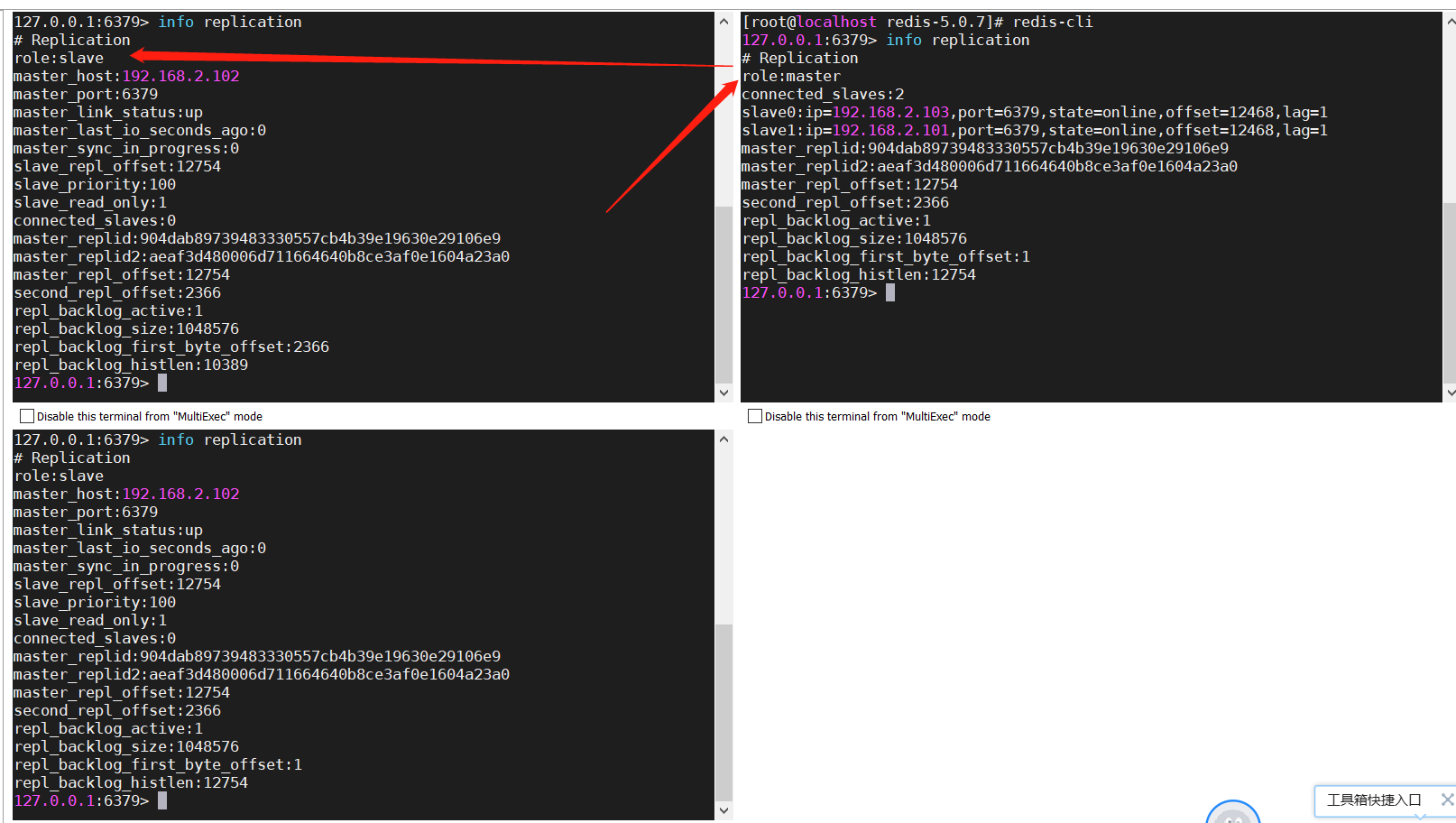- 哨兵将从数据库中的一个节点升级成主数据库(192.168.2.102);