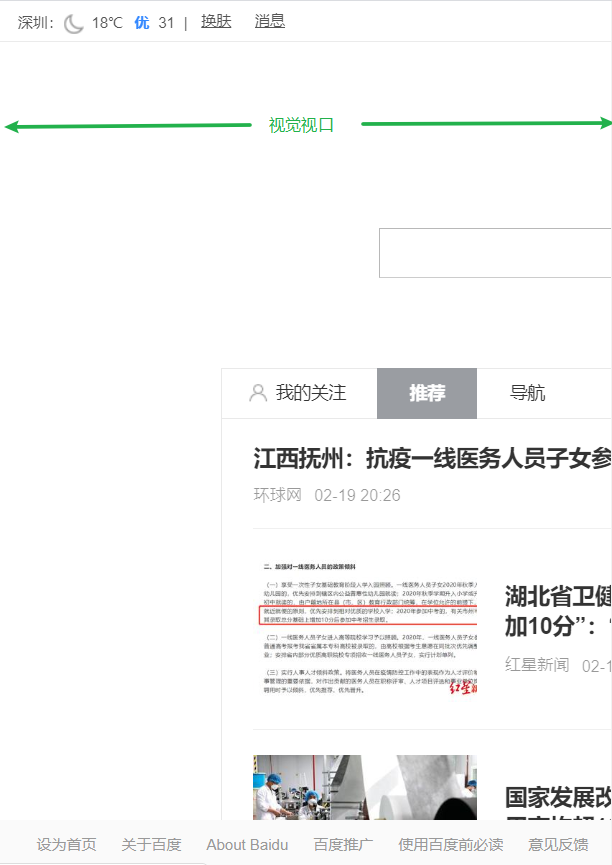 它是用户正在看到的网站的区域。注意:是网站的区域。我们可以通过缩放去操作视觉视口,但不会影响布局视口,布局视口仍保持原来的宽度。