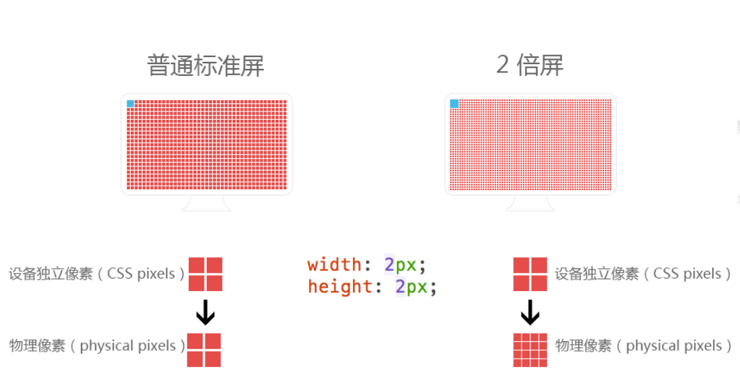 物理像素点指的是屏幕显示的最小颗粒,是物理真实存在的。我们开发时候的1px 不是一定等于1个物理像素的(PC端相等,手机端不相等), 1px的能显示的物理像素点的个数,称为物理像素比或屏幕像素比。