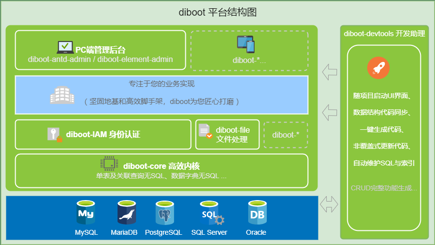 Diboot 2.0.5版本已于近日发布,在此次发布中,我们新增了file-starter组件,完善了iam-starter组件,对core核心进行了相关优化,让devtools也支持对IAM与File组件相关代码进行自动化处理。