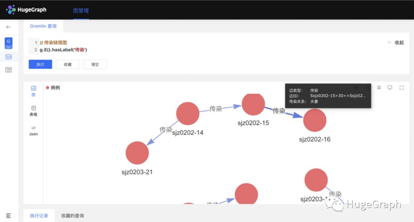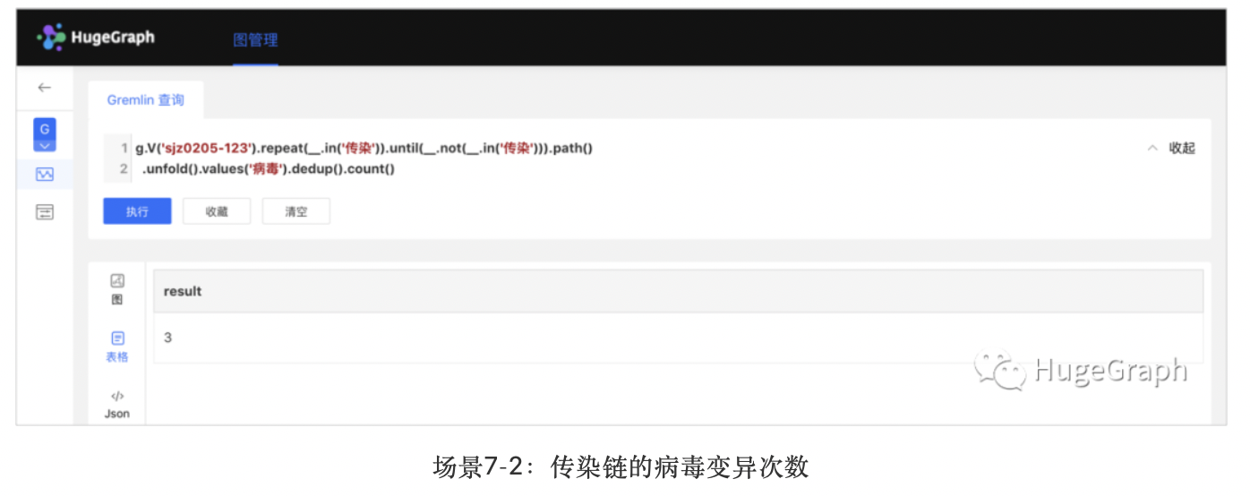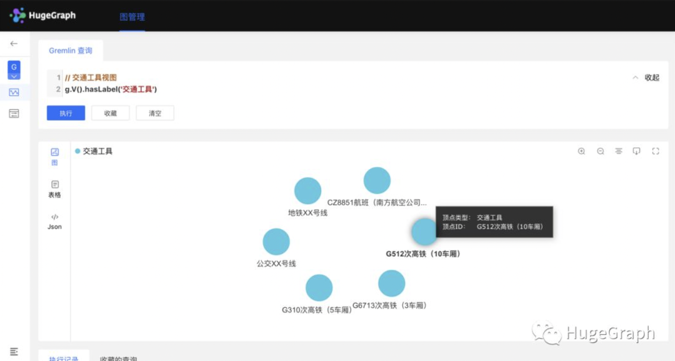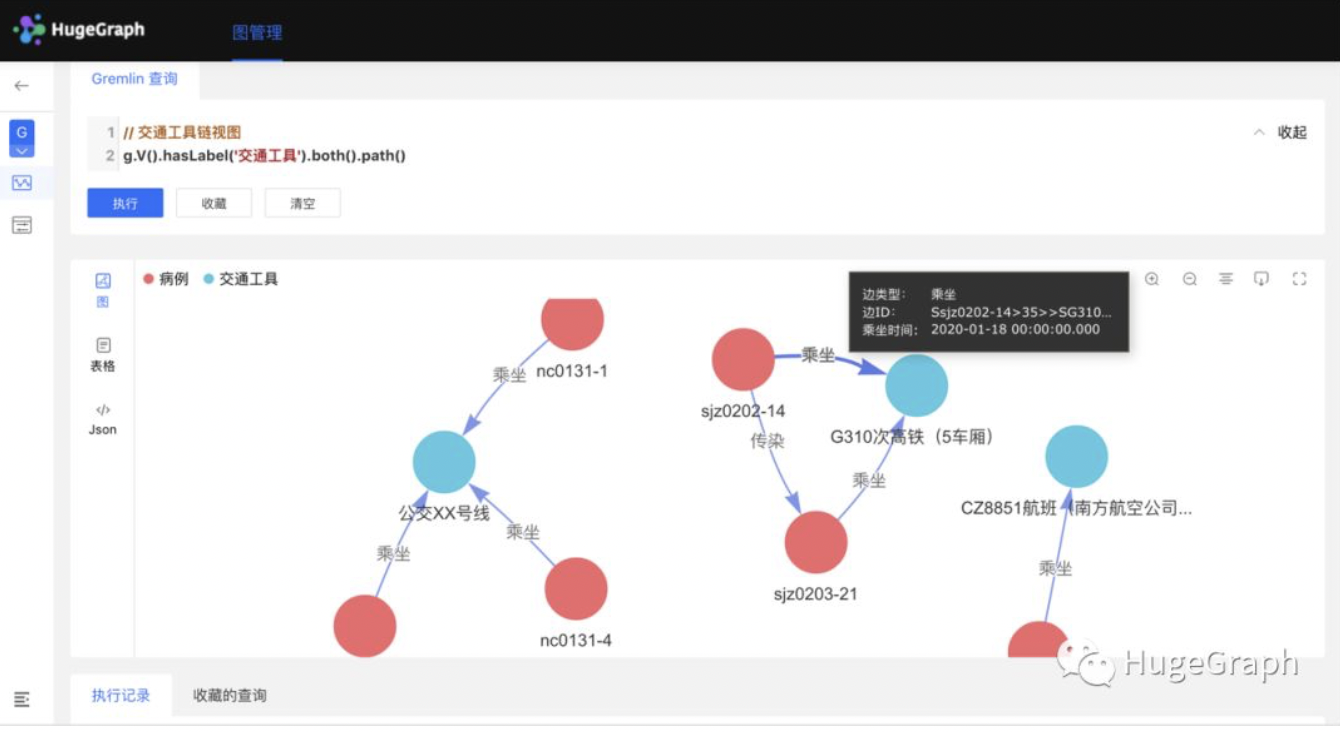 注:查询语句使用的是HugeGraph提供的标准Gremlin图查询语言,下同。