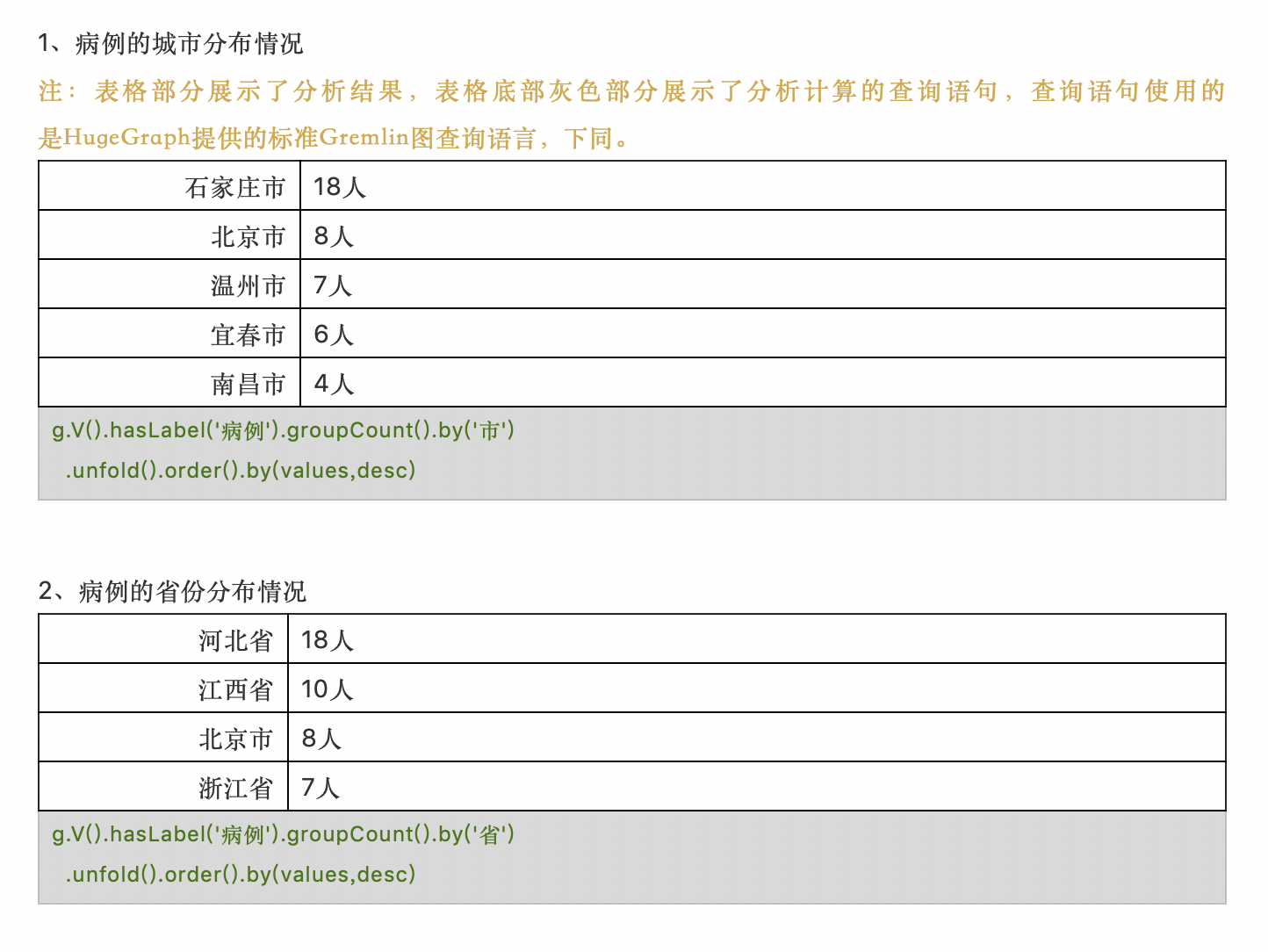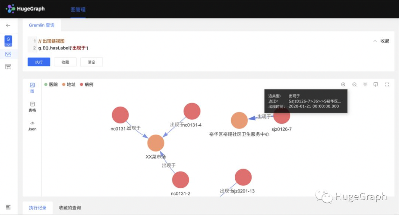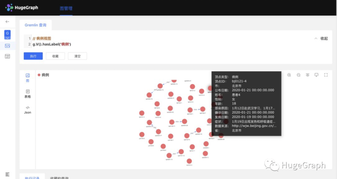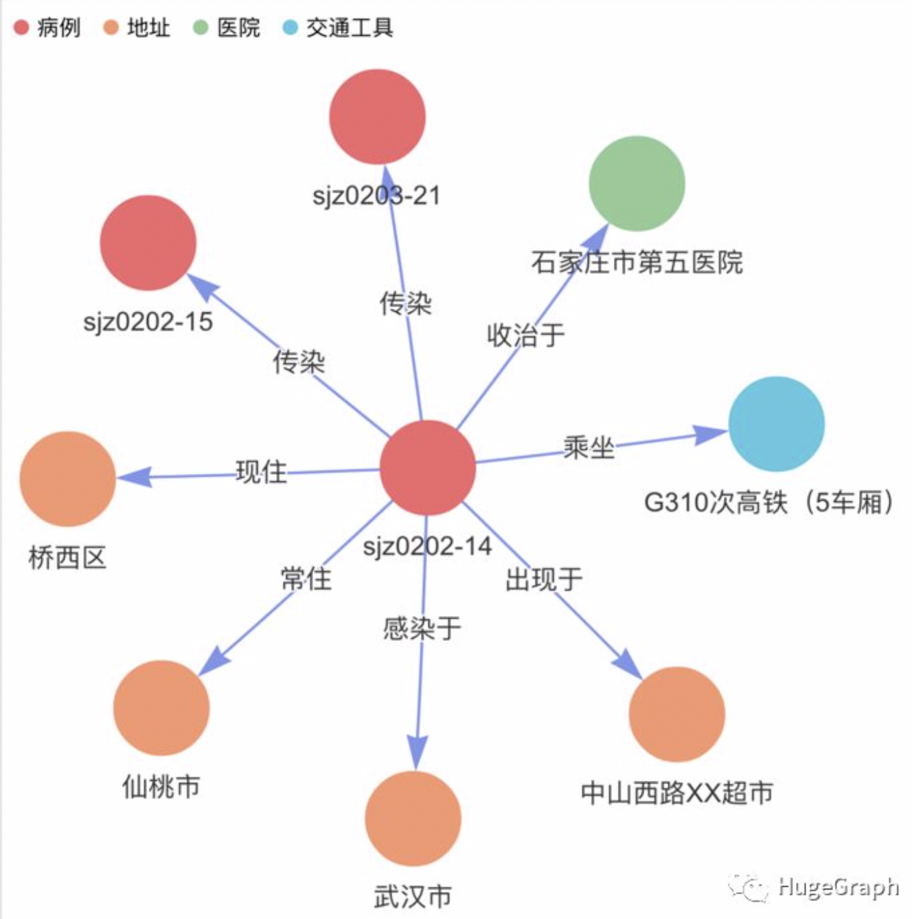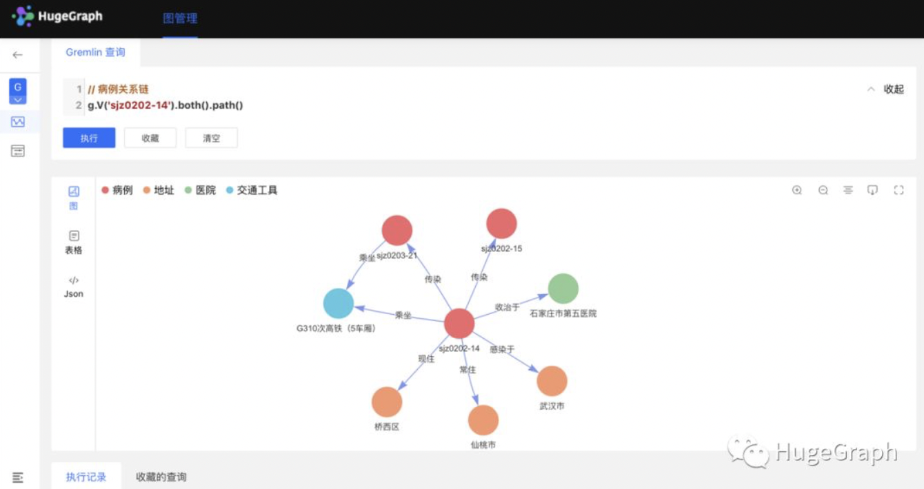 图数据库非常适合用于分析此类关联关系数据,此次使用百度开源的HugeGraph图数据库作为分析工具。分析数据数据均来源于各地卫健委或权威网站公开公布,如北京、石家庄、温州、南昌、宜春等城市。分析场景包括: