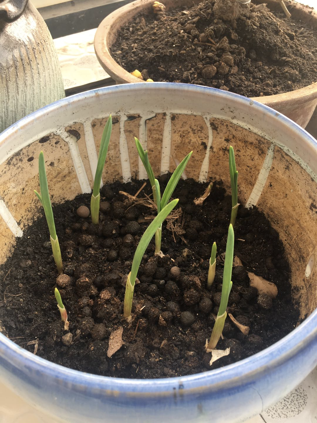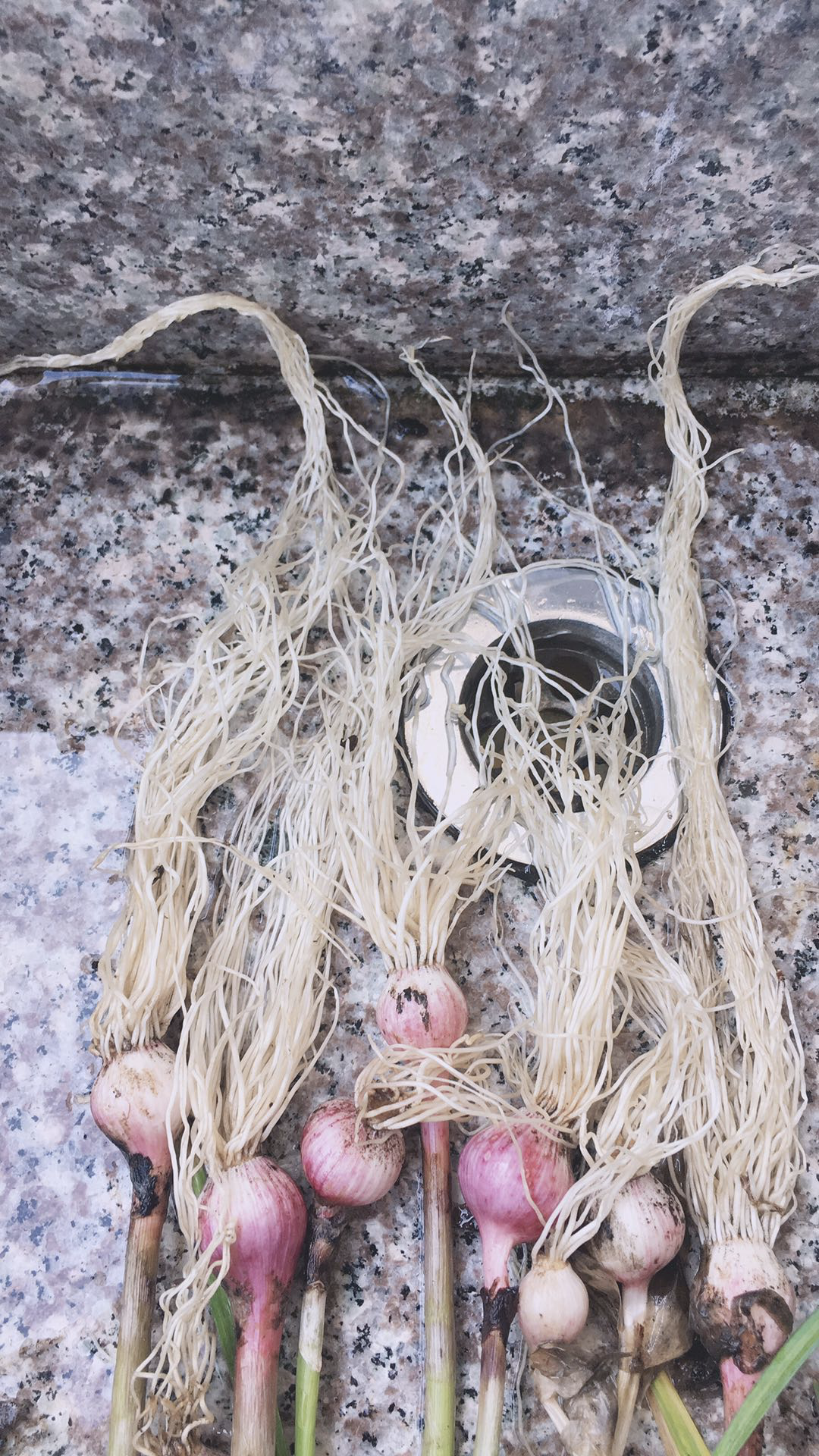 2020年3月18日,我知道这些蒜都不会再生长了,疫情的日子消耗了他们所有的元气,本该茁壮成长的它们因为严重缺水早早的就蒜叶发黄干枯,蒜杆短且消瘦,就像个营养不良的孩子。当我亲手把这些蒜从花盆里拔出来的时候,我震惊了,泥土里全部都是根茎,所有蒜的根茎全部缠绕在一起,并伸展到每一寸土壤。那一刻,我被这些渺小的生命感动了,它们对活着的渴望,对生命的向往,每一根细长的根茎都描述着它们曾经经历过怎样的挣扎和抗争。这也是我第一次见到根茎这么长的大蒜,震惊着,感动着,难过着,却又被它们激励。