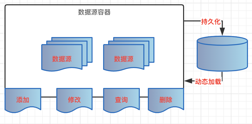 动态管理数据源的基本功能:数据源加载,容器维护,持久化管理。