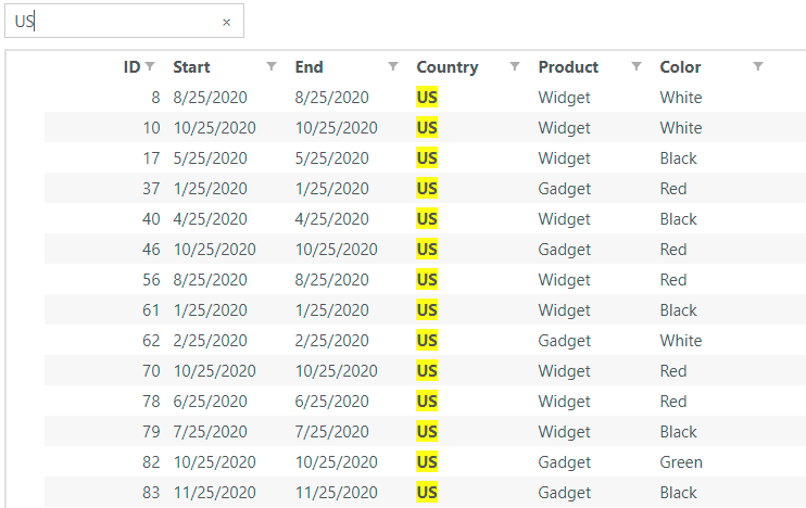 FlexGrid 可以根据所有列中的数据在网格中搜索过滤结果,此功能还可突出显示匹配项。