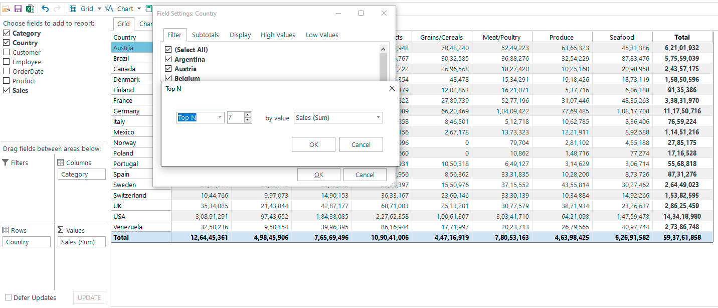 这两个过滤器使您可以从数据中查找排序后的头部元素和尾部元素。例如,此过滤器可用于查找表现最佳的10个产品或落后的20个销售区域。