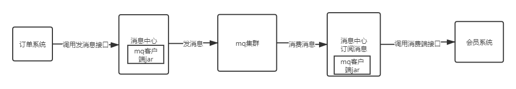 第一种形式就是典型的业务代码里面直接引入mq的客户端jar包