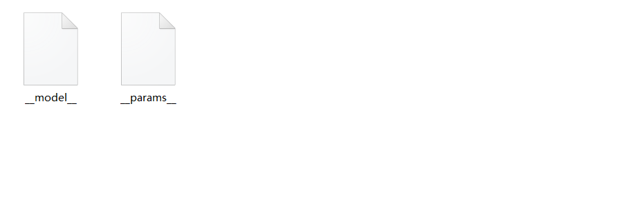 利用export_model.py保存下来的文件如下所示:生成了两个文件,__model__和__params__文件,其中__model__表示网络结构,__params__表示训过程产生的参数。