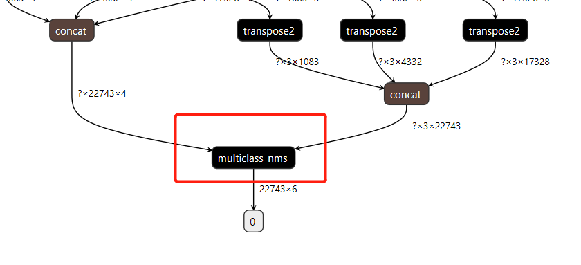 前面生成的模型文件中,__model__文件包含了NMS部分(这一点和tensorflow的pb文件不同,pb文件是没有NMS节点的)。关于__model__文件,我们可以使用Netron进行展开。Netron使用地址https://lutzroeder.github.io/netron/。打开以后可看到网络结构,在最下端发现有NMS节点。
