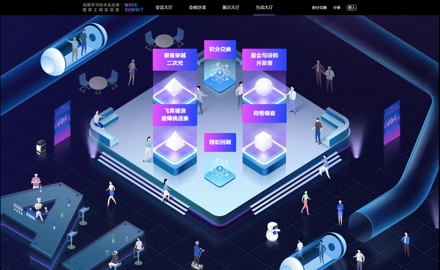为了普及深度学习,让更多公众也能参与体验,官网还专门设置了互动大厅,在这里有趣味的AI互动游戏,例如尝试用AI科技生成头像直接穿越二次元,用AI写一首诗,更有刺激的“避障,飞桨破浪”等你来冒险。甚至还有积分兑换、抽奖活动。