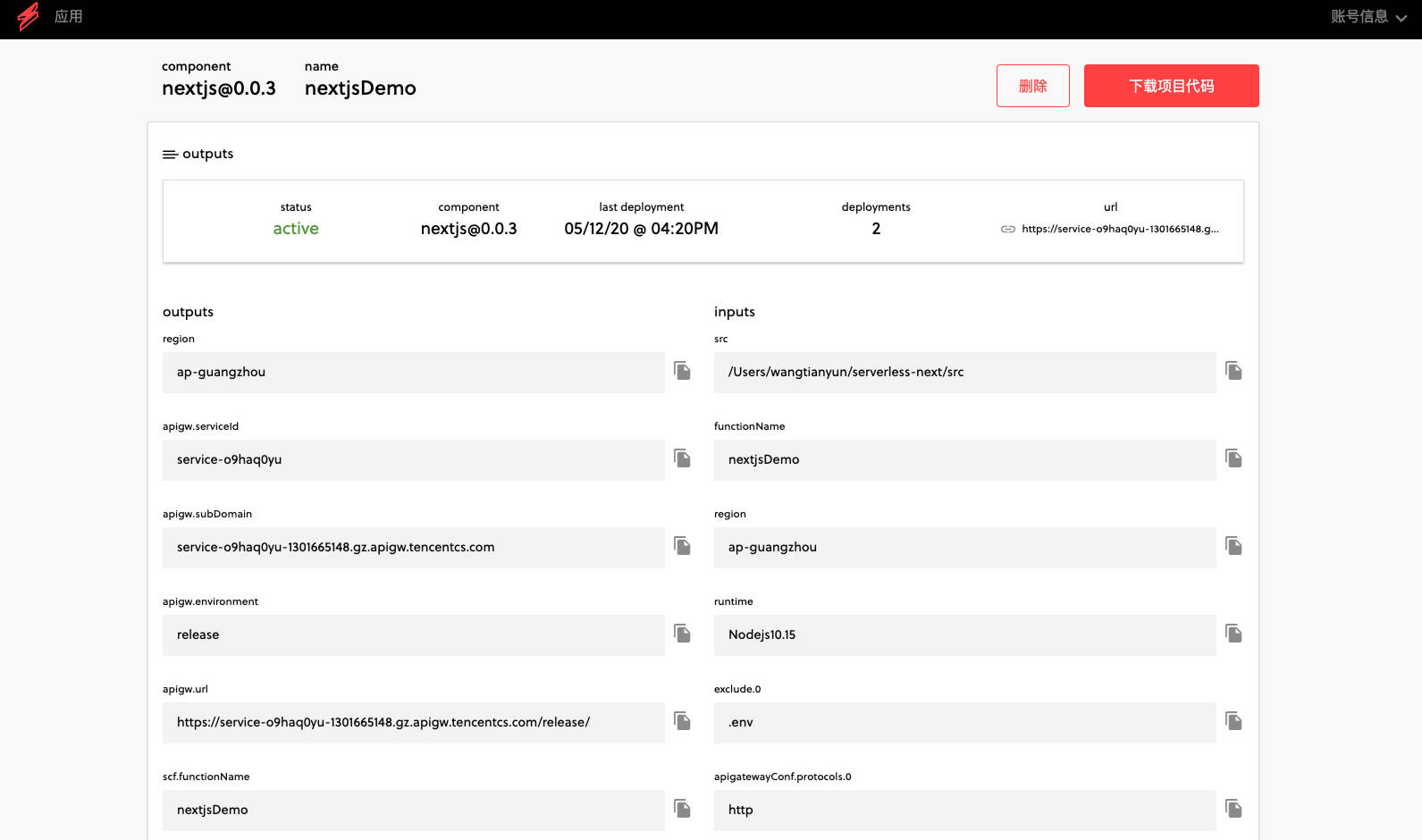 刚才的步骤,我们完成了 Next.js 框架的 Serverless 方式部署。那么,如何查看和管理刚才部署的 Next.js 项目呢?