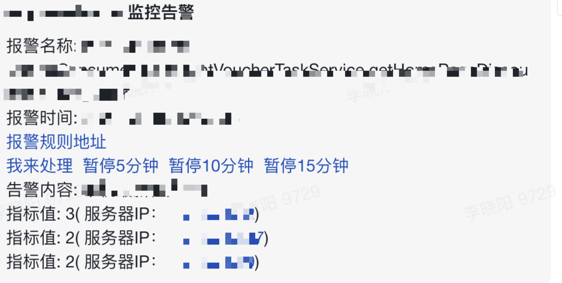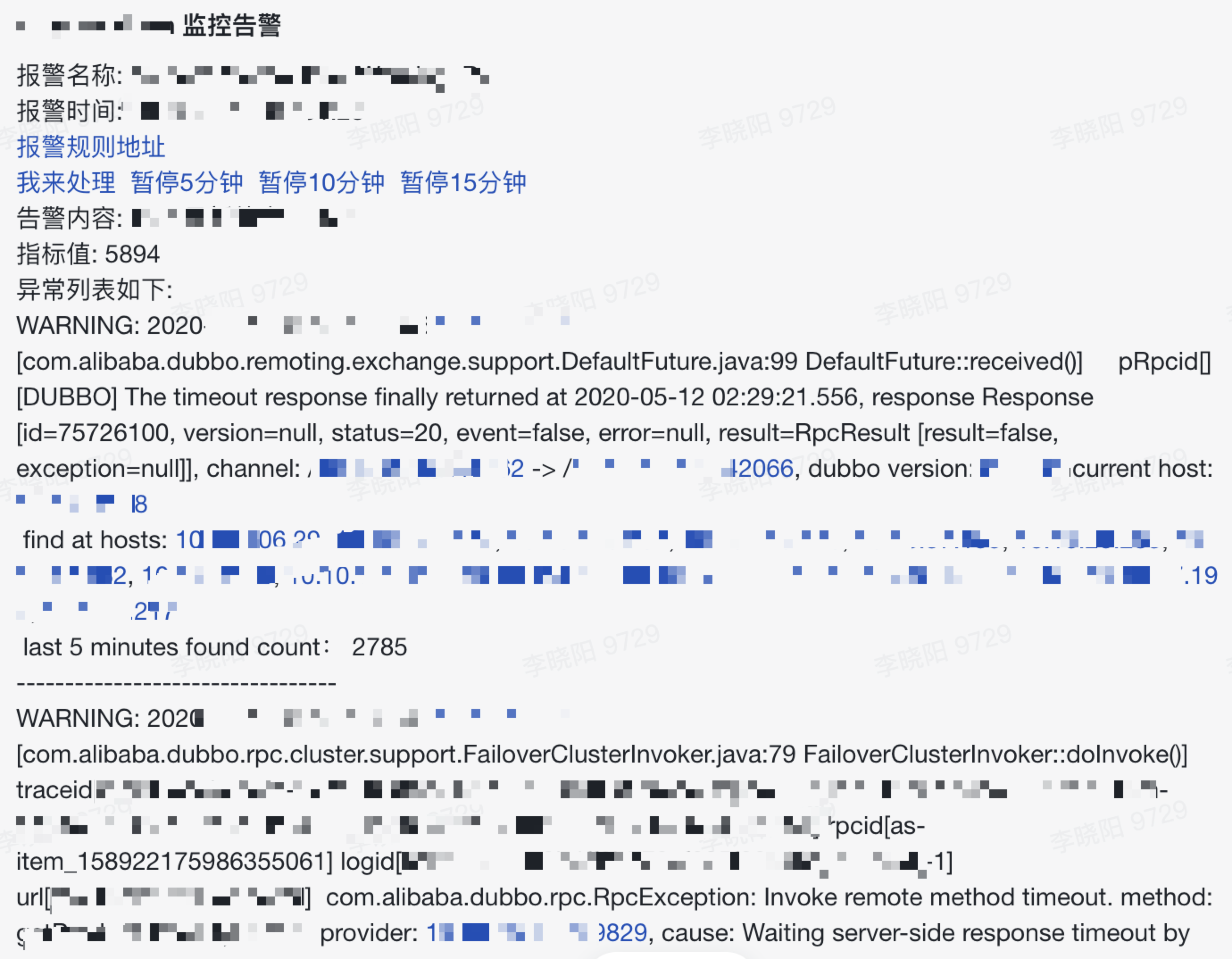 直接将出错内容通过告警发出来,业务方可以快速定位问题。默认取出现频率较高的top5异常。