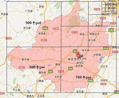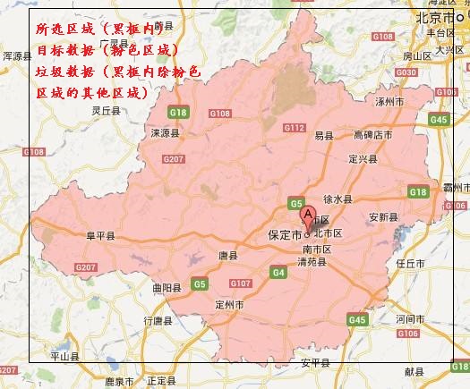 看到没有,在尽可能小的区域内,垃圾数据所在区域也几乎占了小一半了,除了临近的市区(任丘等),也包含了其他省(山西,北京等)的数据。除了区域不精准,更可怕的是像北京这种大城市,poi数量很大,所以会造成爬取的数据可能只有部分是目标数据。