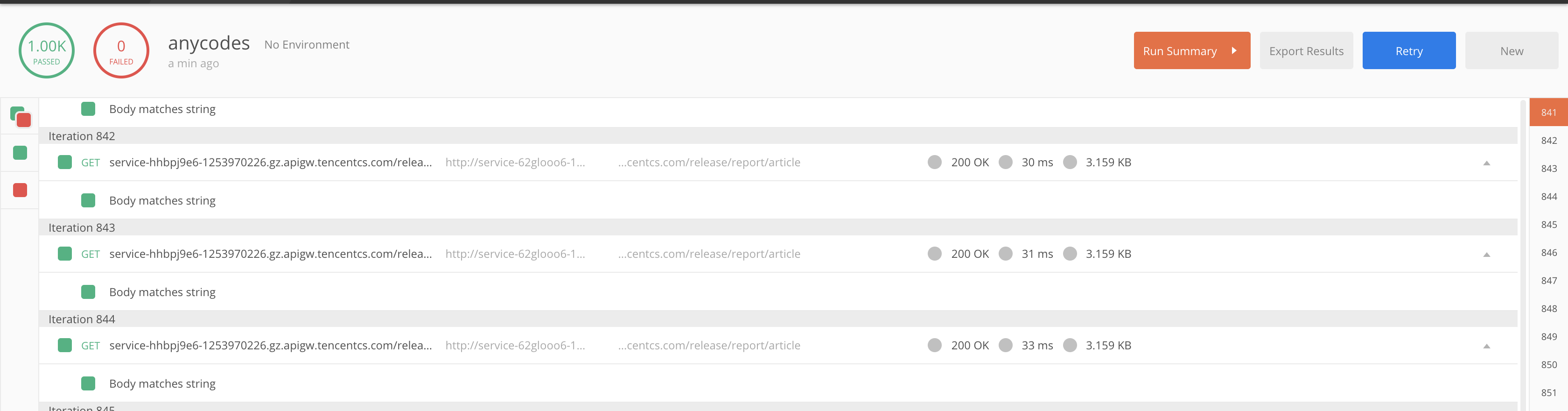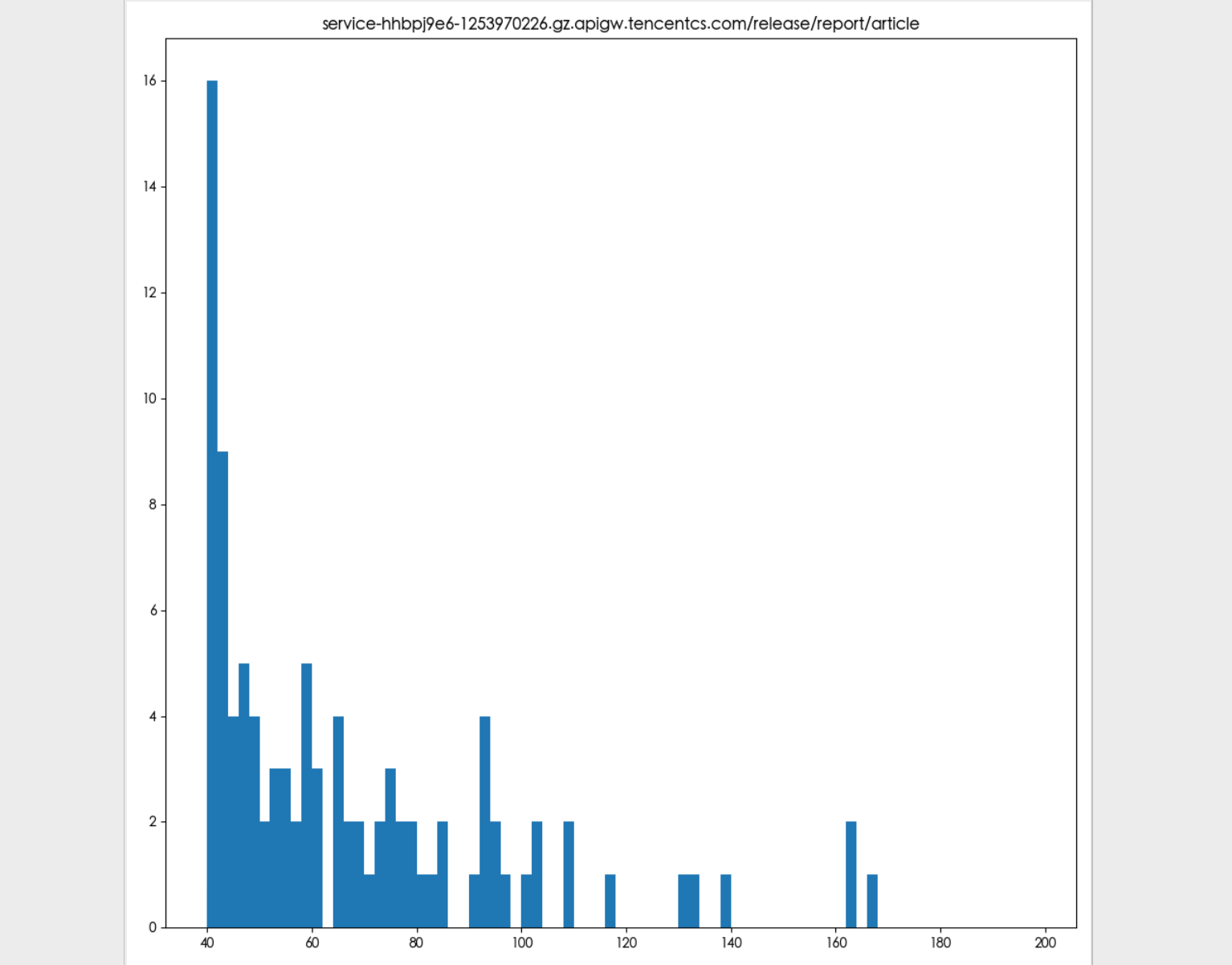 可以看到,接口表现良好,并未出现失败的情况,对该测试结果进行耗时的可视化: