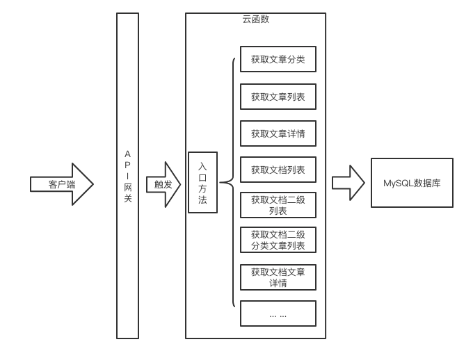 整体功能就是云函数 SCF 绑定 API 网关触发器,用户访问 API 网关指定的地址,触发云函数,然后函数在入口处进行功能拆分,请求不同的方法获得对应的数据。