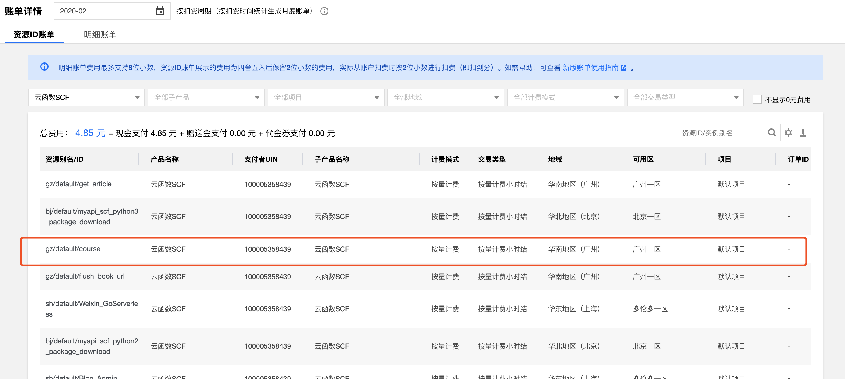 由于云函数没办法看到单个资源的费用,所以整个函数我有几十个,一共花费的费用也远远比服务器的一个月便宜很多。