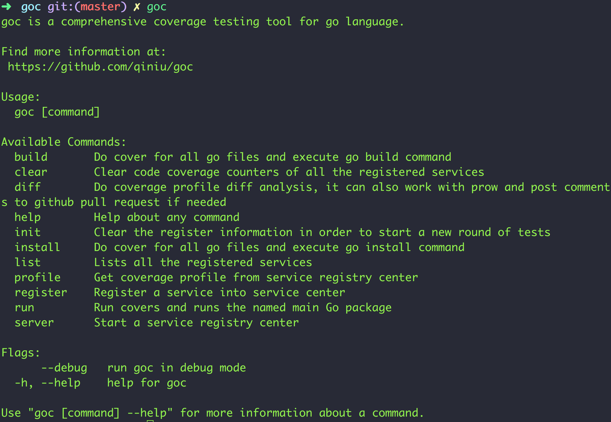 这个系统就是goc, 设计上希望完全兼容go命令行工具核心命令(go build/install/run)。使用体验上,也希望向go命令行工具靠拢。以下是goc 1.0版本支持的功能: