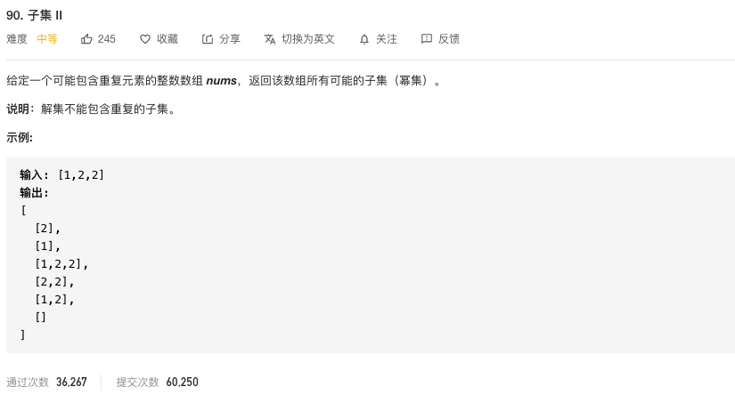 最开始,我还是想通过一个简单的例子,一步一步的带大家看一下回溯算法的题目应该是怎么一步一步解决的,最终,通过这个题目,我们就可以大致的整理出一个回溯算法的解题框架;先来看下面这个题目,是一个子集的题目,题目难度中等。