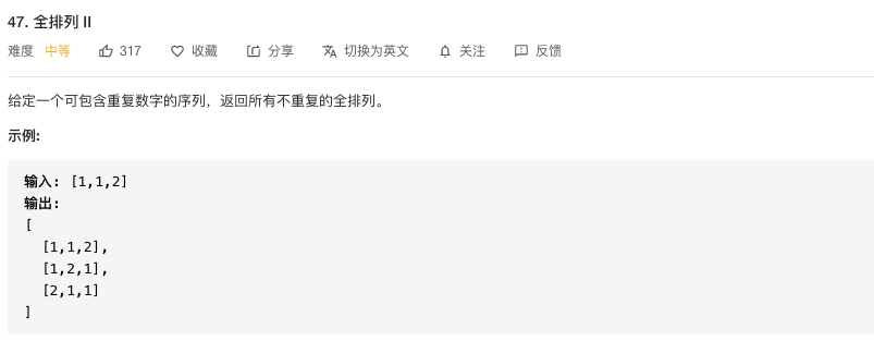 不重复的全排列这个我们知道怎么解决,用前面的去重方法即可,但是,怎么保证有相同元素的集合不出现重复的排列呢?