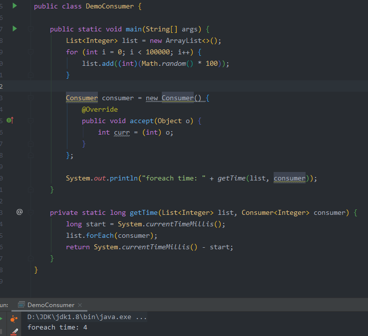 根据刚才得到的结论,我们试试把 Consumer 用 Lambda的方式定义一下