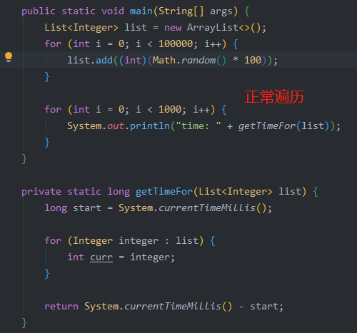 操作系统预热这个概念是我咨询一位大佬得到的结论,在百度 / Google 中并未搜索到相应的词汇,但是在模拟测试中,我用 普通遍历 的方式进行测试: