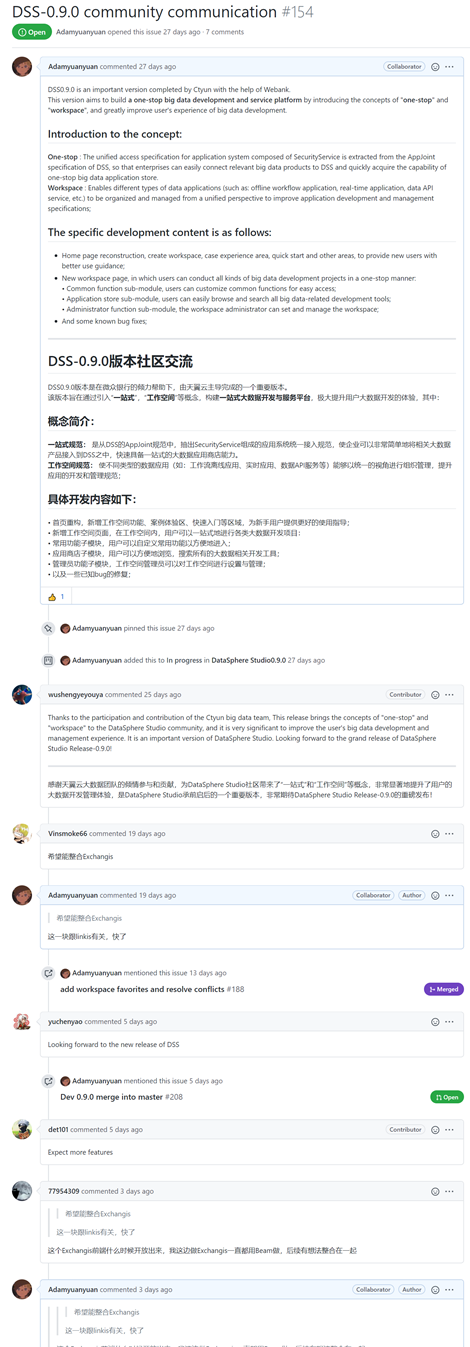 DataSphere Studio 0.9.0的顺利发布,极大地鼓励了WeDataSphere社区更多的开发者和参与公司,以更加积极和开放的心态去参与WeDataSphere相关开源项目的合作,协作共建先进大数据平台套件的良好趋势。