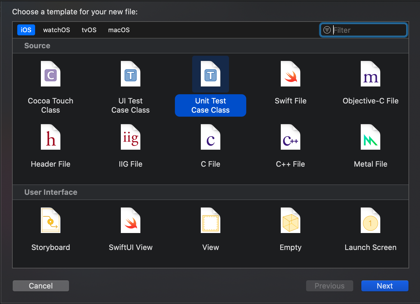 为测试类添加一个分类,后缀名为 UnitTest。如下所示