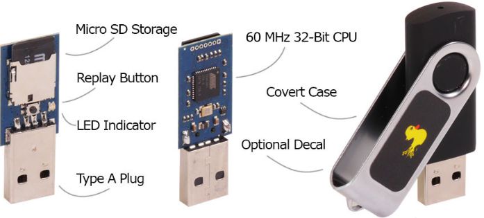 攻击者在定制攻击设备时,会向USB设备中置入一个攻击芯片,此攻击芯片是一个非常小而且功能完整的单片机开发系统,它的名字叫TEENSY。通过TEENSY你可以模拟出一个键盘和鼠标,当你插入这个定制的USB设备时,电脑会识别为一个键盘,利用设备中的微处理器与存储空间和编程进去的攻击代码,就可以向主机发送控制命令,从而完全控制主机,无论自动播放是否开启、是否安装杀毒软件,都可以成功。