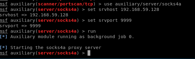 这样,通往192.168.90.0/24网段的流量通过meterpreter 的session2进行路由。然后,我们在msf启动socks代理:
