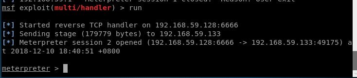 这样一来,当win7被插上u盘后,攻击者的msf就获得了一个反弹shell: