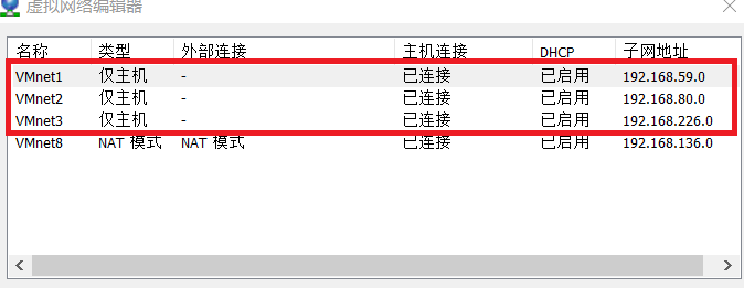 我们可以利用VMware搭建出3层网络的网络环境,首先在虚拟机中新建3块网卡,并选择仅主机模式: